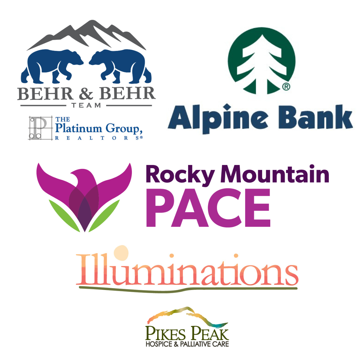Pikes Peak Hospice & Palliative Care thanks Alpine Bank, The Behr & Behr Team at The Platinum Group Realtors, and Rocky Mountain Health Care Services for sponsoring Illuminations and supporting compassionate hospice care